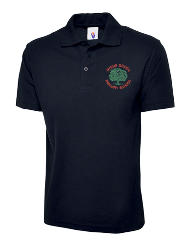 NAVY Left Breast Embroidered School Logo Flat knit collar and hemmed sleeves Self coloured buttons
