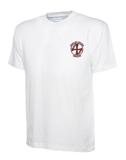 White Left Breast Embroidered School Logo Ribbed neckband Open hemmed seam Taped neck seam