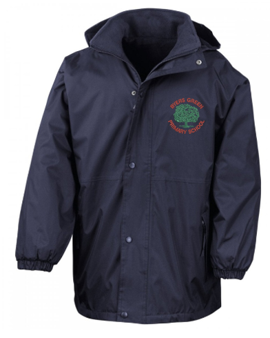 Left Breast Embroidered Logo Waterproof / Windproof Inner Fleece Concealed adjustable hood Elasticated cuffs Reflective triangle Full length zip with studded storm flap
